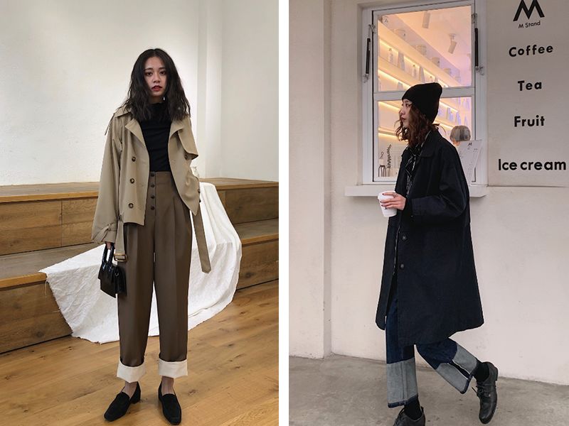 今年鸭梨最喜欢的风衣搭配,是阔腿裤,不过上宽下宽,更适合瘦一点的小仙女。