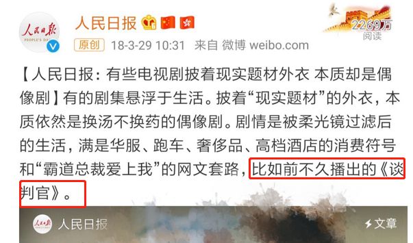 之前人民日报官媒,就批评过《谈判官》,可嘉行一意孤行,还让杨幂拍类似的脑残剧。