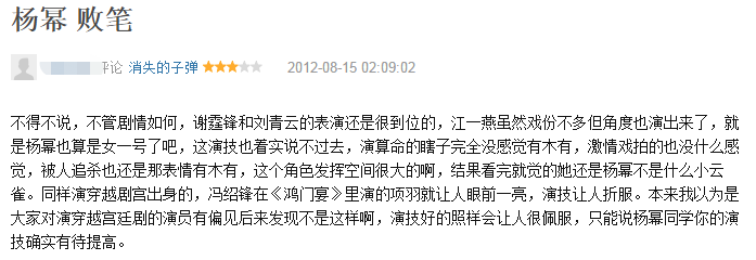 杨幂《消失的子弹》里搭档谢霆锋刘青云,到最后杨幂被评价为:此部电影最大的败笔,演技有待提高。