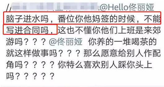 粉丝对佟丽娅被江疏影压番的事情,非常气愤,开骂佟丽娅的工作人员脑子进水,工作能力太差。