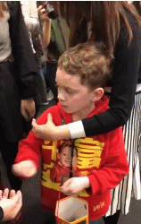 别忘了,他只是个8岁的孩子却像是一个被摆弄的没有感情的拍照机器。