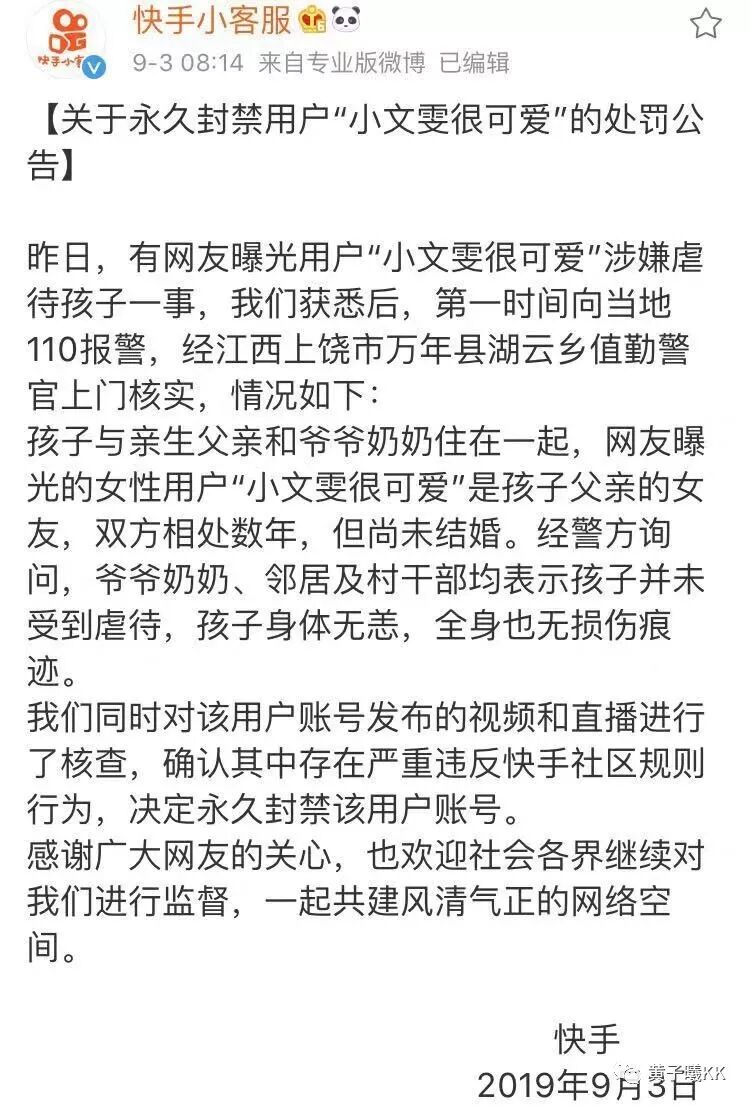事情大概是这样的:前不久,博主在快手关注了一个叫“小文雯很可爱”的主播,据说是这个孩子父亲的女朋友(孩子生父离婚了,跟小文雯在一起),小文雯带着这个孩子拍视频长达两年时间。