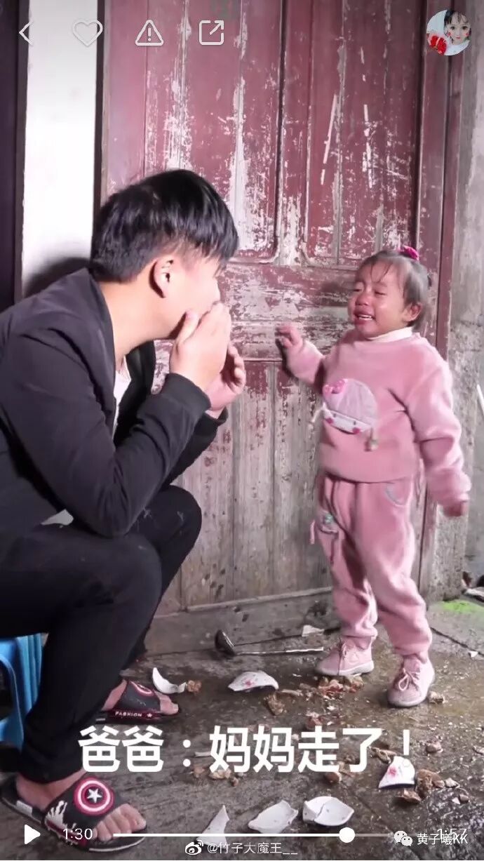这是一段题为《妈妈不要丢下我》,演爸妈闹离婚,妈妈出走的情景段子,呼吁大家给孩子一个完整的家,正能量,上了热门,280万次播放。