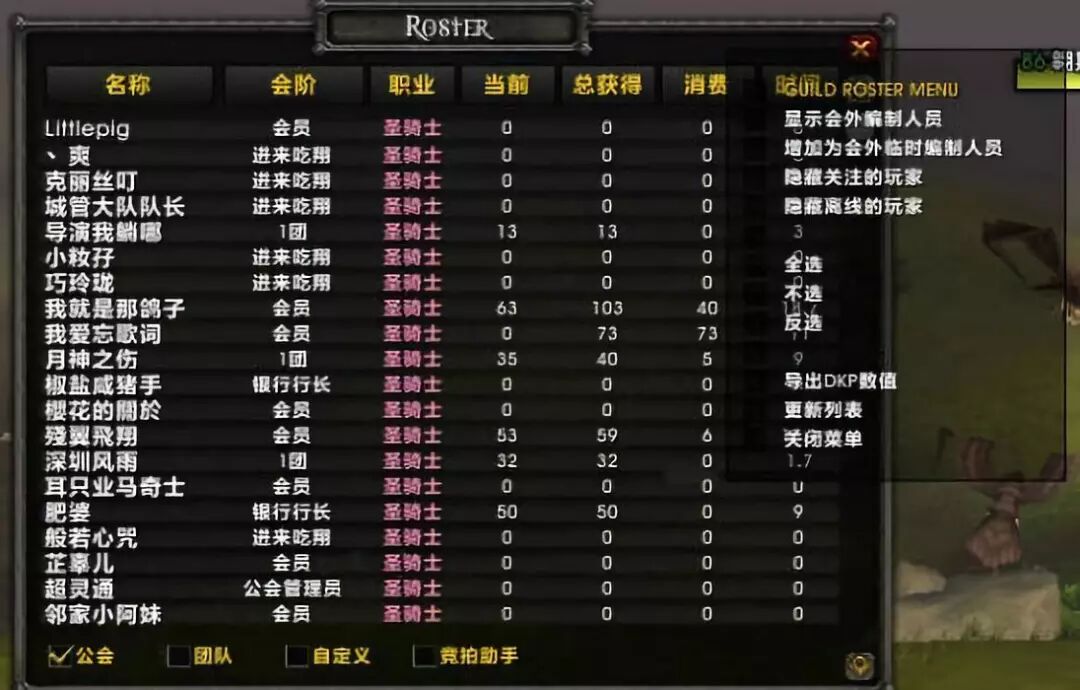 简单地说,就是每次出席团队活动,不管是准时出席,打BOSS还是帮忙做任务等等,都会给每个参与者记上贡献分数(DKP),这相当于你在公会的“货币”。