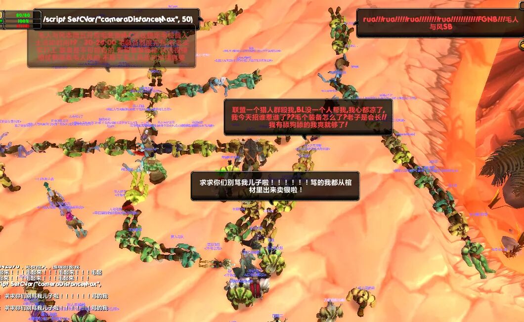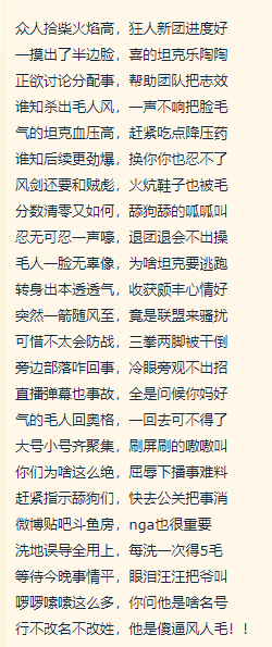 无数的1级小号,纷纷取名为“毛人小缝”“毛人风”之类的名字,在主城刷着各种吐槽,就是为了嘲讽和羞辱狂人与风。