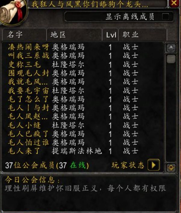 于是在怀旧服刚开的时候,狂人与风就和许多他的粉丝一起创立了公会。