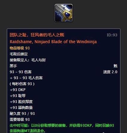 但是很快被许多“毛了毛了”的小弟们淹没了,在一番做作之后,把自己的93点DKP清零,然后收下了左脸。
