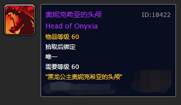 一天之前他们打了奥妮克希亚的巢穴,在杀了奥妮克希亚之后会获得她的头颅,这个头颅是一个任务物品。