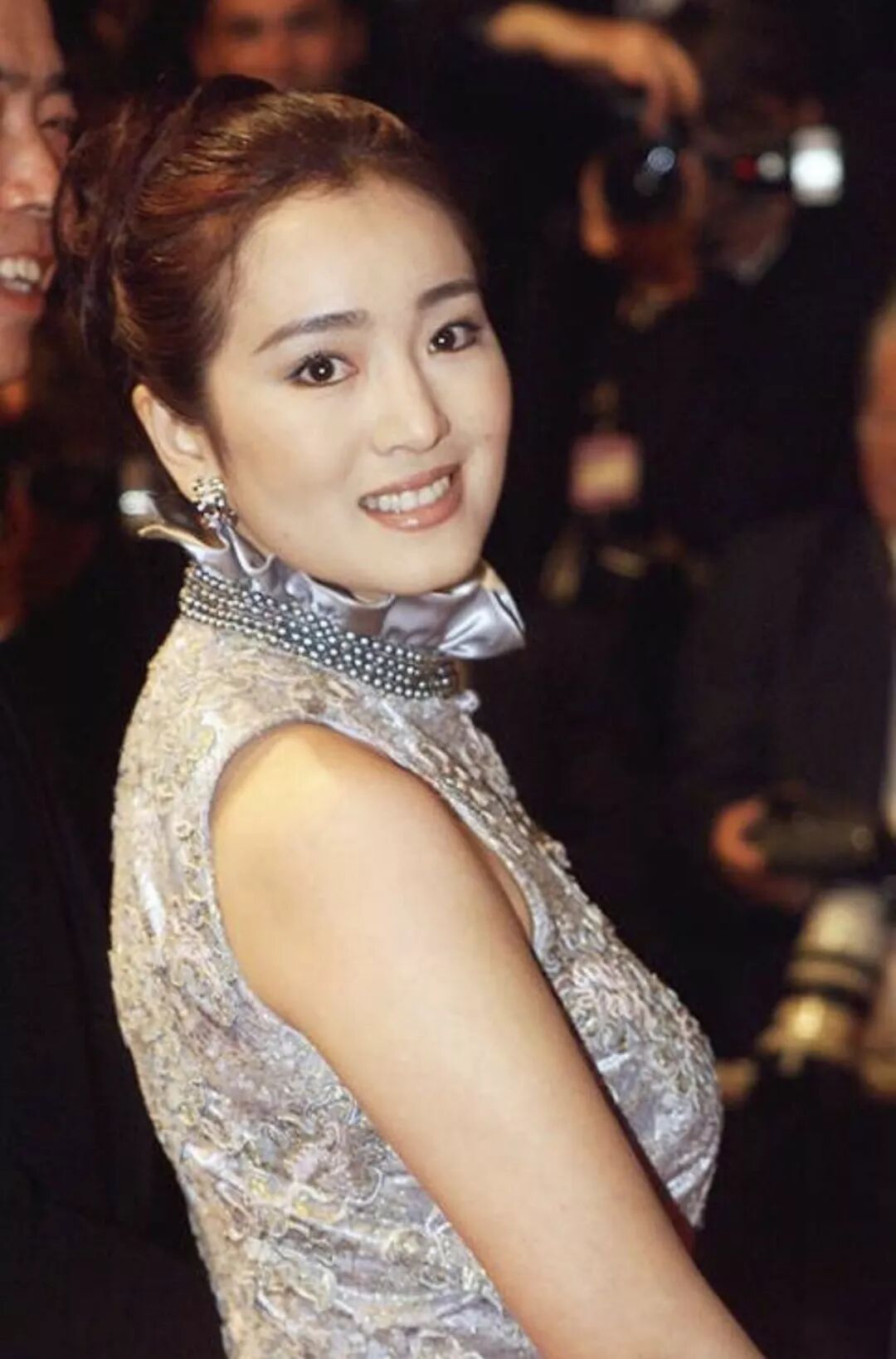 从这张照片看得出来,这个时候巩俐在红毯上面对摄影师的镜头已经十分自然大方。