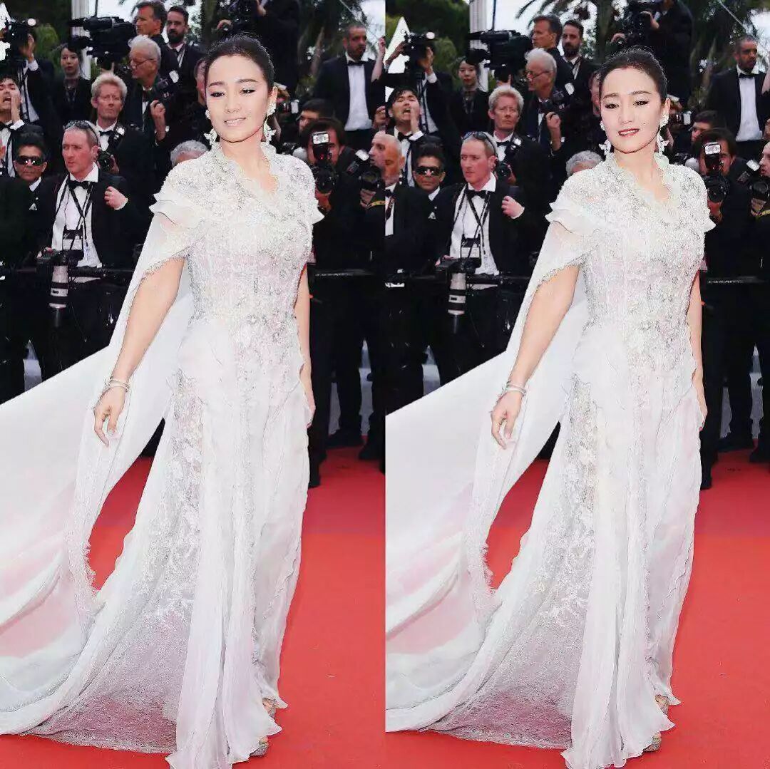1988年第一次出席戛纳的时候,巩俐才23岁,一身白色露肩旗袍很青涩。