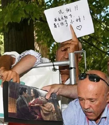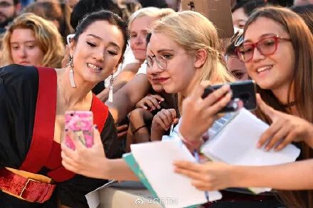 还有高举着“巩俐!!我在太阳下等了你3小时”的男粉,配上右下角的爱心真是绝了。