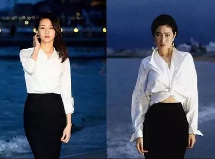 2018年的时候《芳华》女主苗苗在戛纳海边拍了组写真,致敬巩俐1993年时拍的照片。对比之下就像是小孩偷穿了大人的衣服一般,人是好看的,但气场未免太单薄了一些。