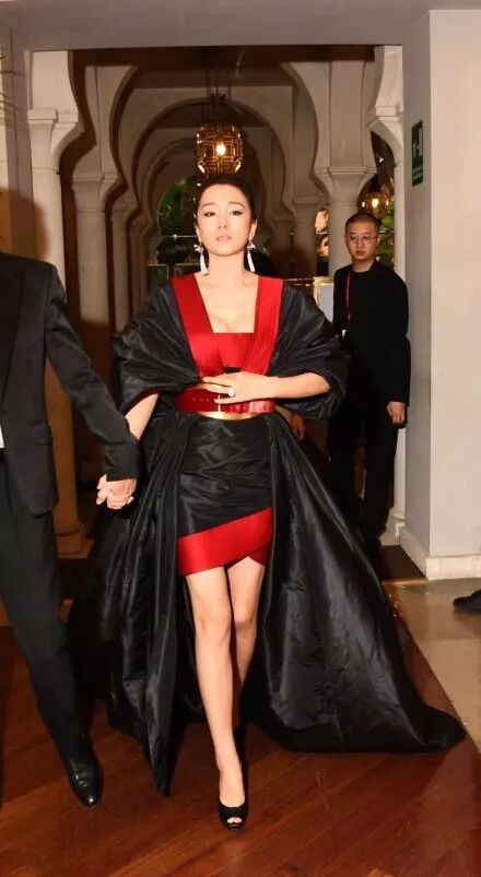 巩皇在红毯上真的从头到脚都在发光啊。这件衣服本身并没有霸气的感觉,但穿在巩俐身上就演绎出了女皇装的气势,直接从“人靠衣装”变成了“衣靠人装”。
