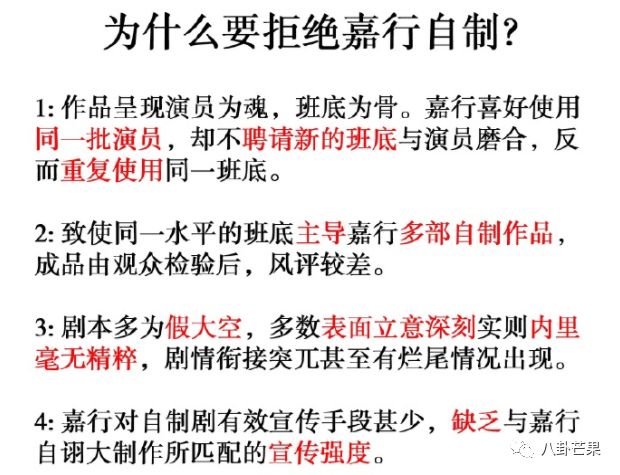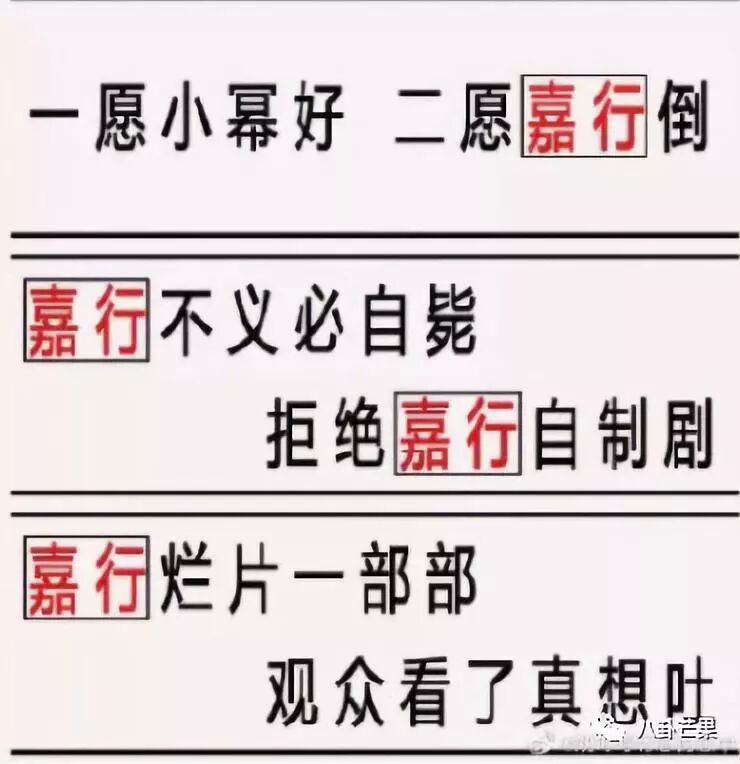 嘉行的剧的确是不太考虑质量和艺术性的,主要是奔着赚快钱去的。这是粉丝做的图,她们也知道这些剧和电影多烂。