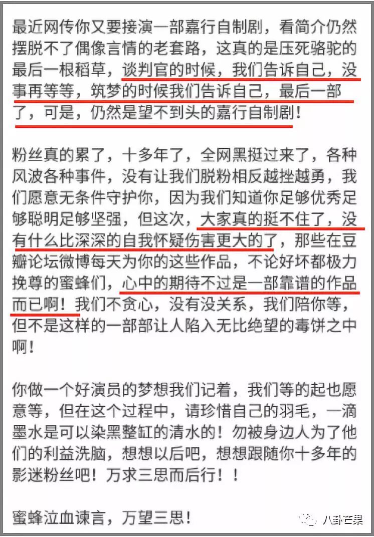 粉丝的心情很复杂,一边觉得让偶像丢人了很心疼,一边觉得不得不这样做,就像当众打孩子的妈妈:妈妈也不想这样,但为了你的前途,妈妈没办法啊!
