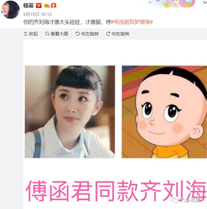粉丝还说她看《谈判官》和《筑梦情缘》就各种不忿,恨死那个造型了,还要强撑着说“杨幂美就完事了”。