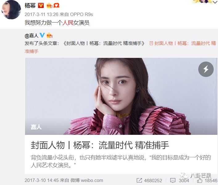“要做人民女演员这句话是你自己说的,我们从你已知规划中看不出任何想要实践的想法,难道只是随便说几句漂亮话哄哄粉丝嘛?”