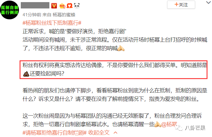 看了这场撕X你会恍然大悟,原来粉丝比路人都知道杨幂的剧和演技多烂!看看这位大粉说的:“不是你要做什么我们都得买单,明知道那是屎还要捡起来闻吗?”振聋发聩啊有木有!