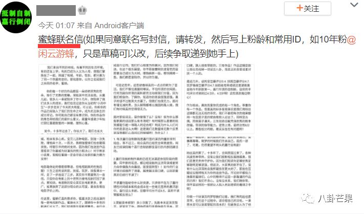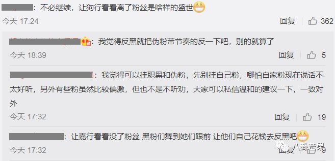 那位大粉被覃西怼了之后就怒而离职了,专心带领各位粉丝去撕叉。大粉还号召大家罢工,不反黑了,不轮数据了,让嘉行看看,离开了粉丝会是怎样的“繁华盛世”!吼~我寻思着原来粉丝也知道那些转发数据和评论有多假!