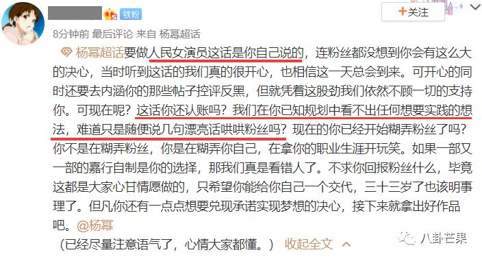 “我们心中期待的不过是一部靠谱的作品而已啊!”感觉杨幂配不上她的粉丝了。