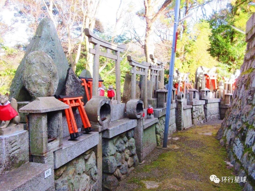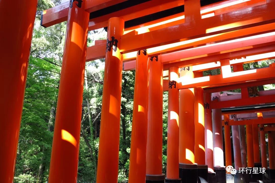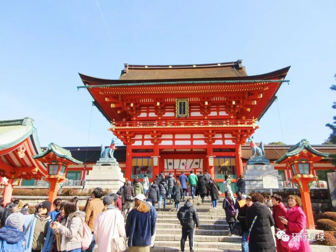 京都的稻荷大社,因为供奉稻荷神(没错,日语是“稻荷”不是“稻禾”)而随处可见稻草和狐狸的元素。稻荷神在古代是保佑粮食丰收的神,现代则保佑商贸繁盛,因此备受日本商人推崇,不断捐钱修建供奉鸟居,形成一种奇观而名声大噪。