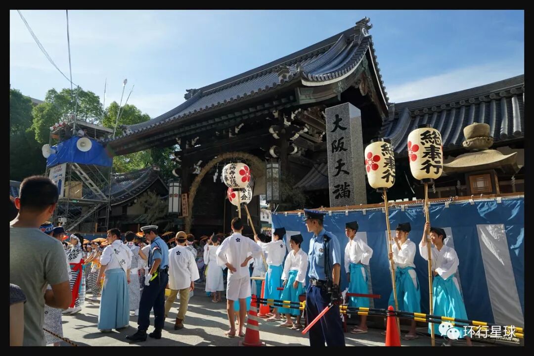 我第一次看到这个天神祭还是在留学读书时期。天神祭非常盛大,主办祭典的是著名的大阪天满宫,参加者除了专业的祭典活动演艺人员,还有大量大阪居民,游行队伍超过100米。