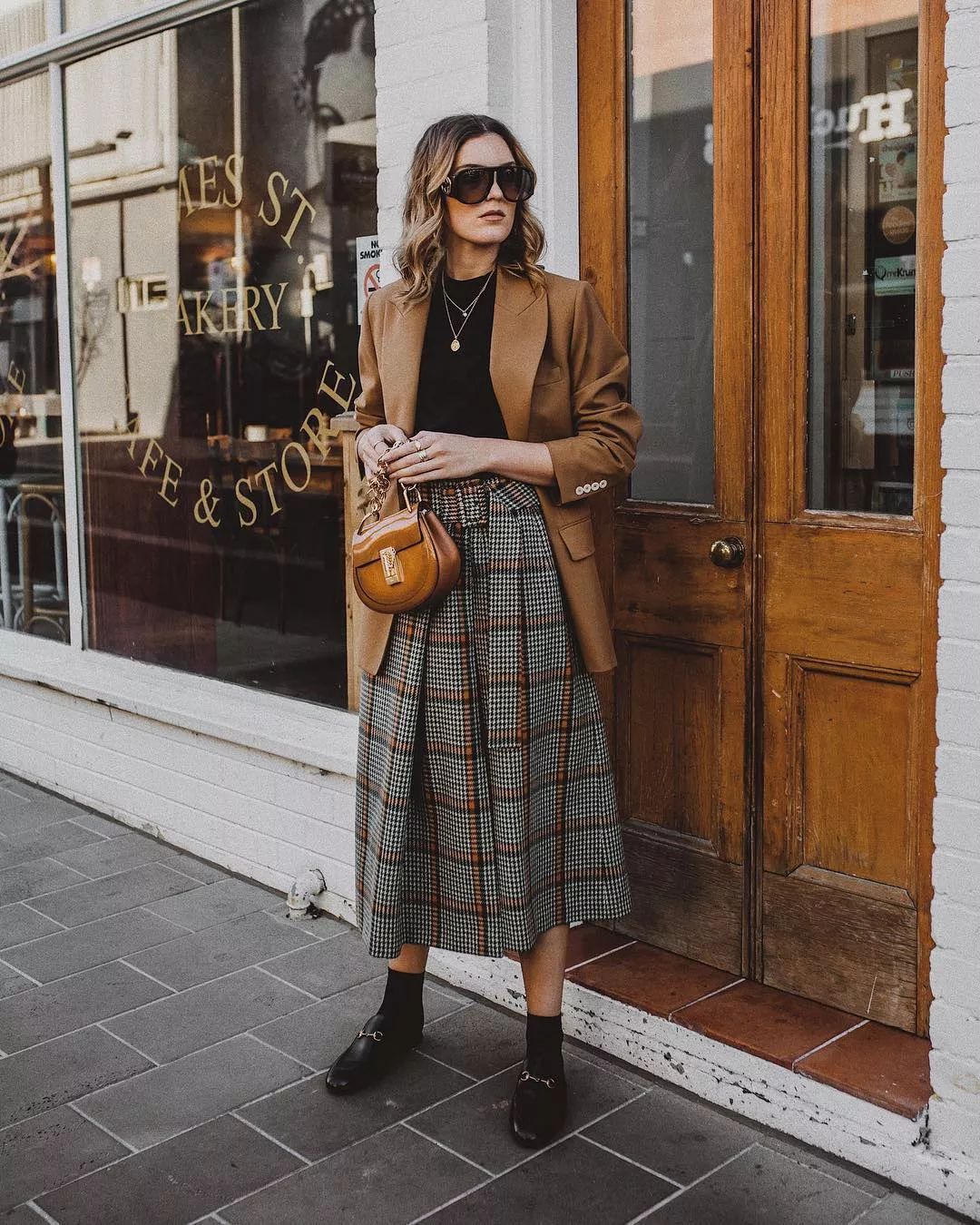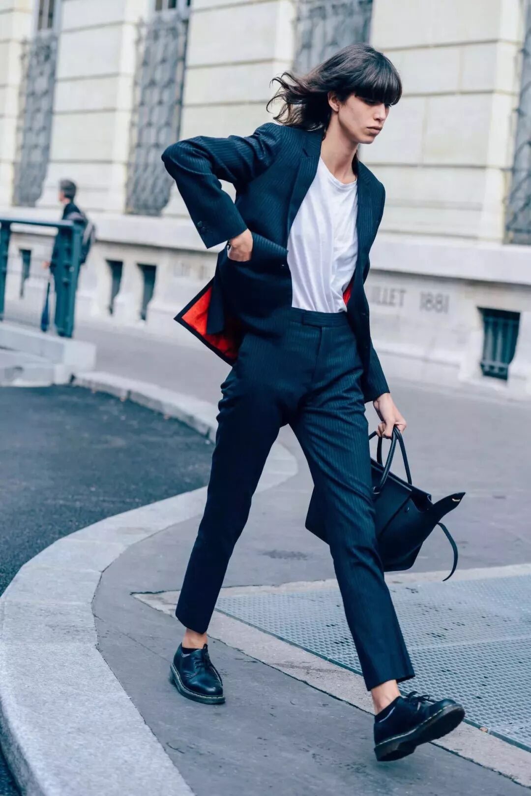 同色系的搭配会更显高级感,尤其是黑色乐福鞋搭配黑色袜子,可以在视觉上拉长腿部线条,显瘦与增高两者兼得。