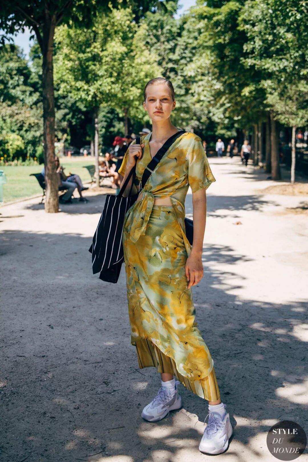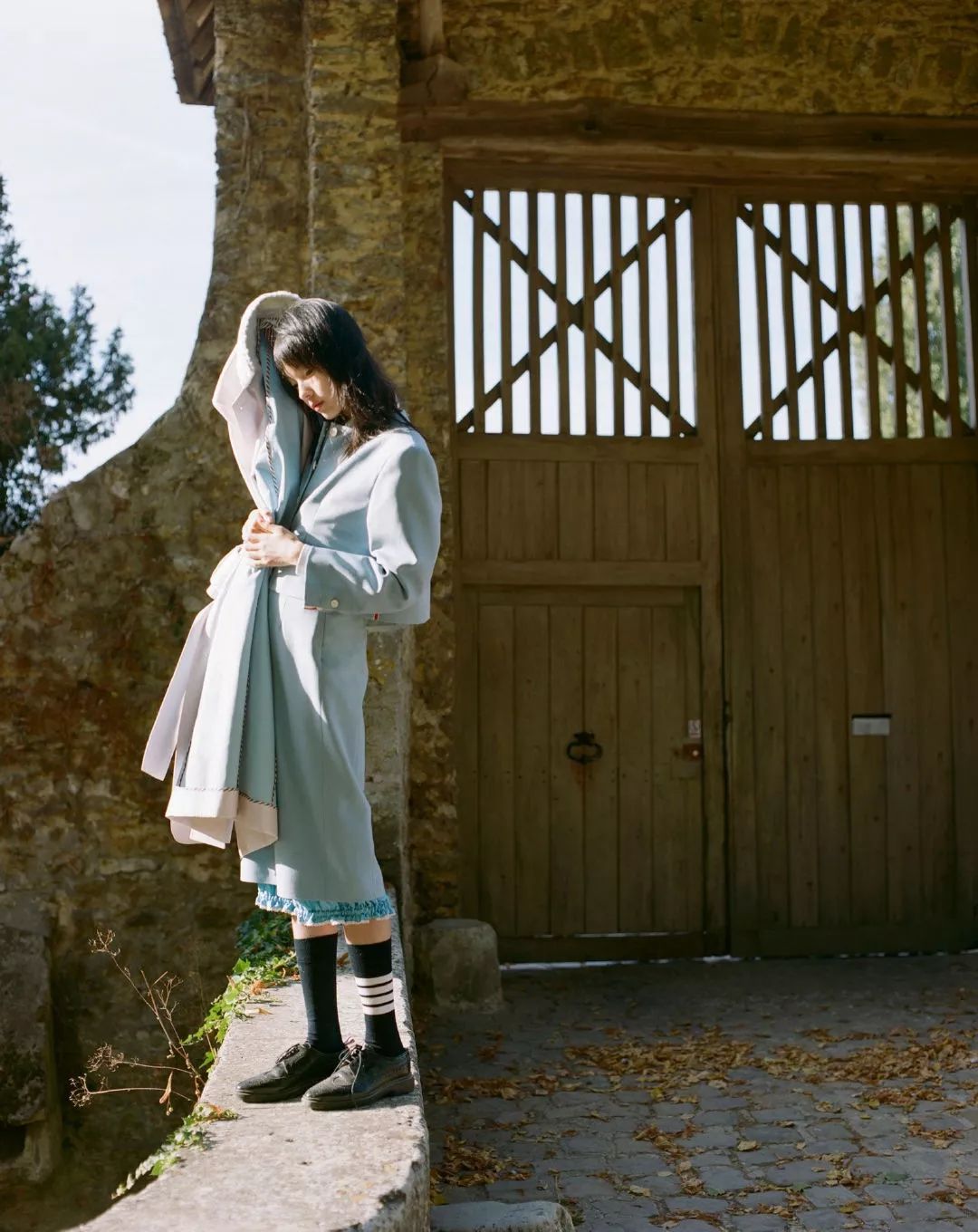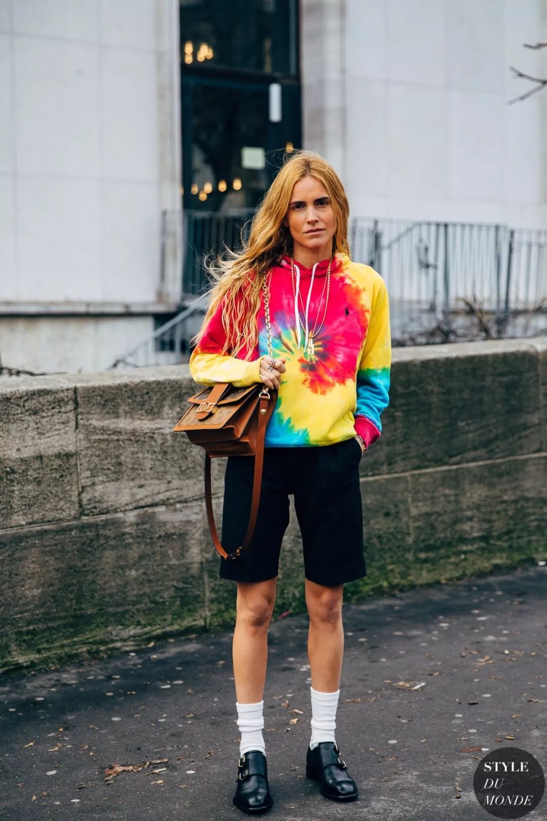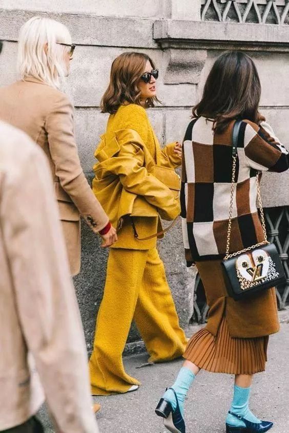 还可以选择搭配的袜子与衣服上的细节同色呼应,这样不经意的时髦,最为高级!