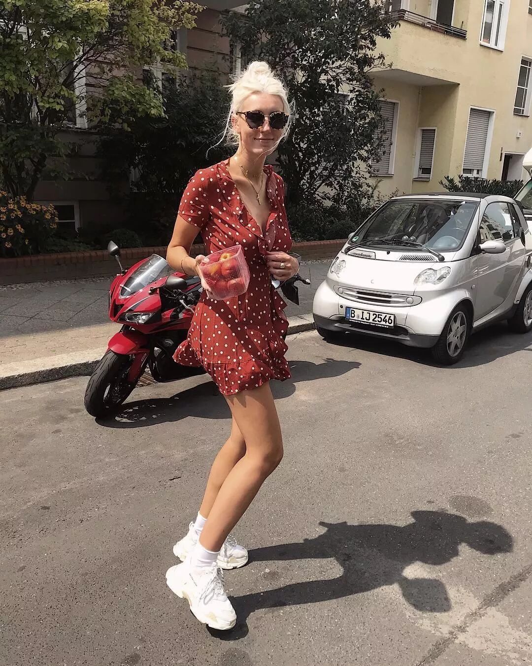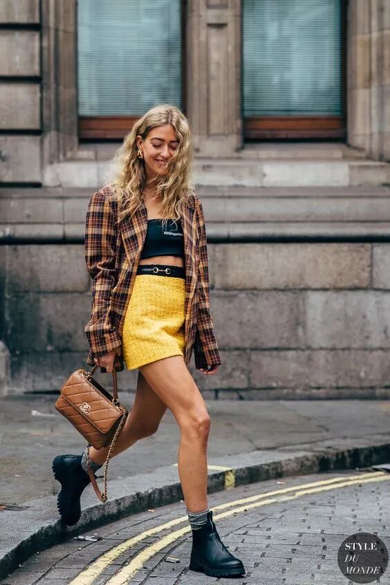 喜欢个性大胆的你,也可以尝试搭配中筒袜。充满了趣味时髦的味道。