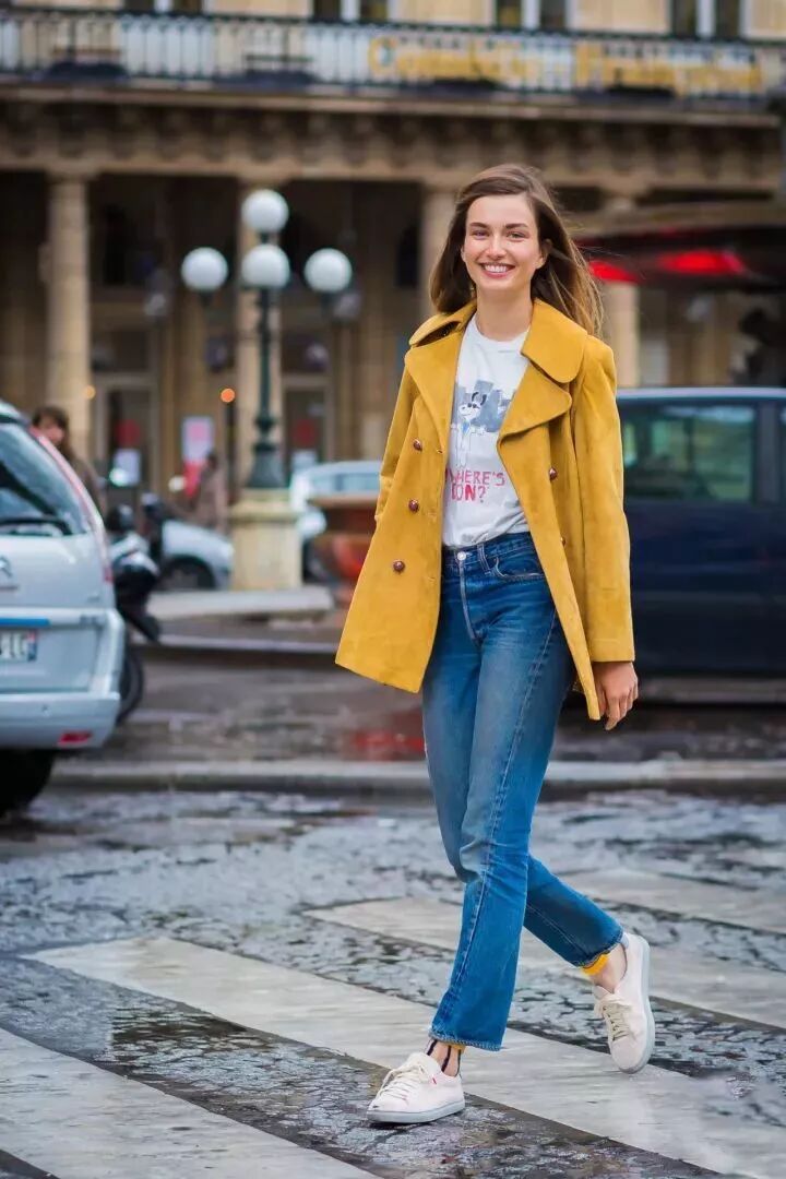 如果不想袜子露太多的你,也可以选择搭配短袜,只需要露出一点点就可以。能够体现出你对细节上的精致感。