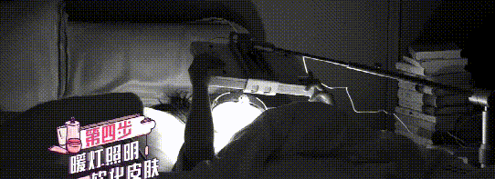 她睡觉都不忘开大排灯(美容仪)照上一照。