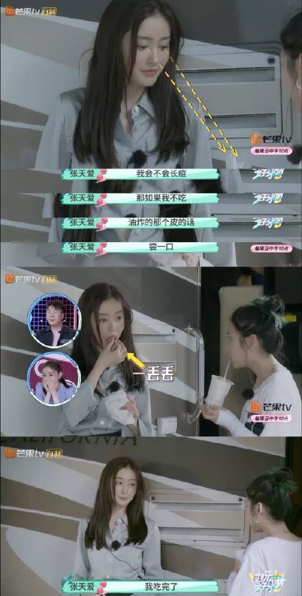 而张天爱吃炸块鸡都得小心翼翼的分三步走。