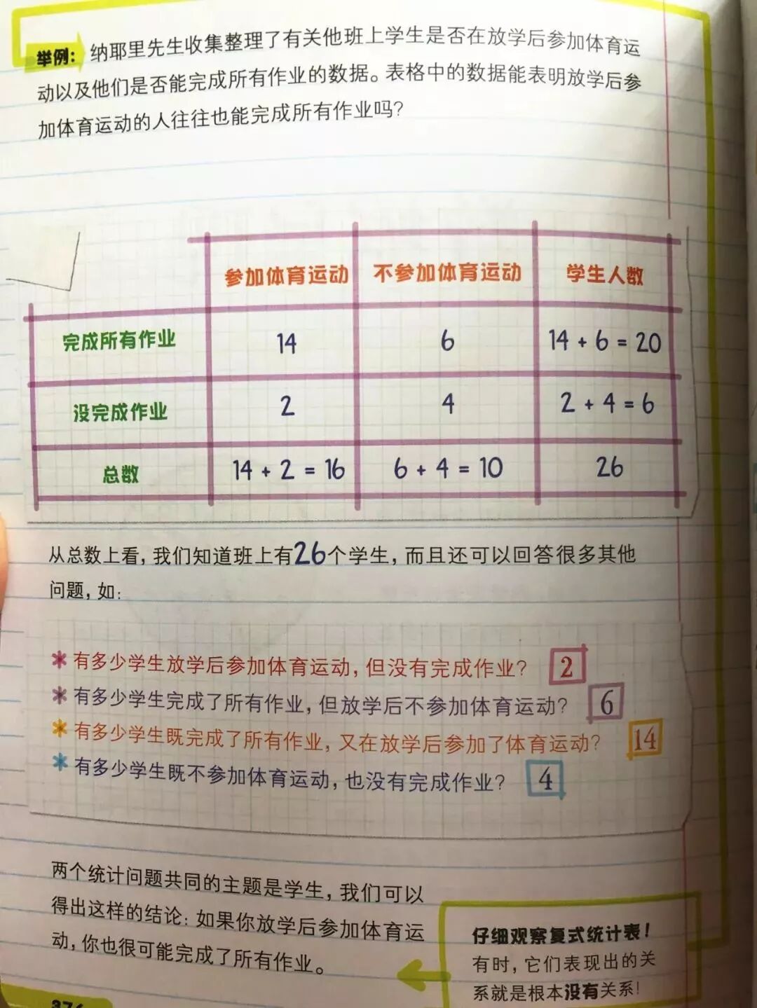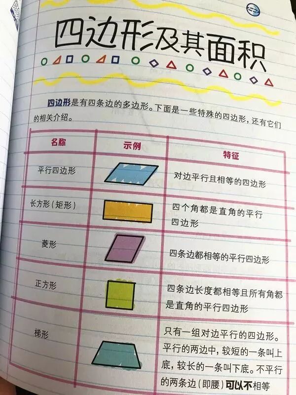 起初小编觉得这难度得五年级以上的娃才能接受,看到三年级的小娃这么受用,小编还仔细比对了一下,里面还有关于一二年级的初级统计和平面图形的笔记讲解,这种图表和多色彩展示的方式孩子很容易理解和梳理清楚。