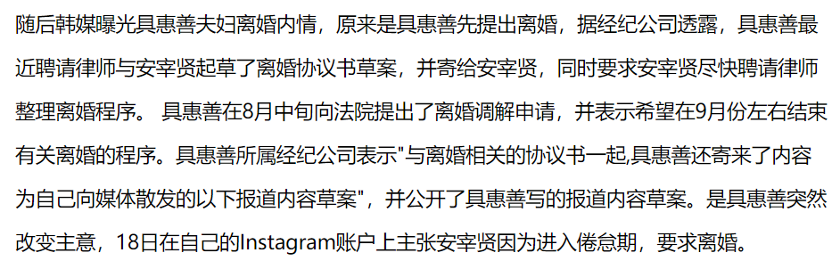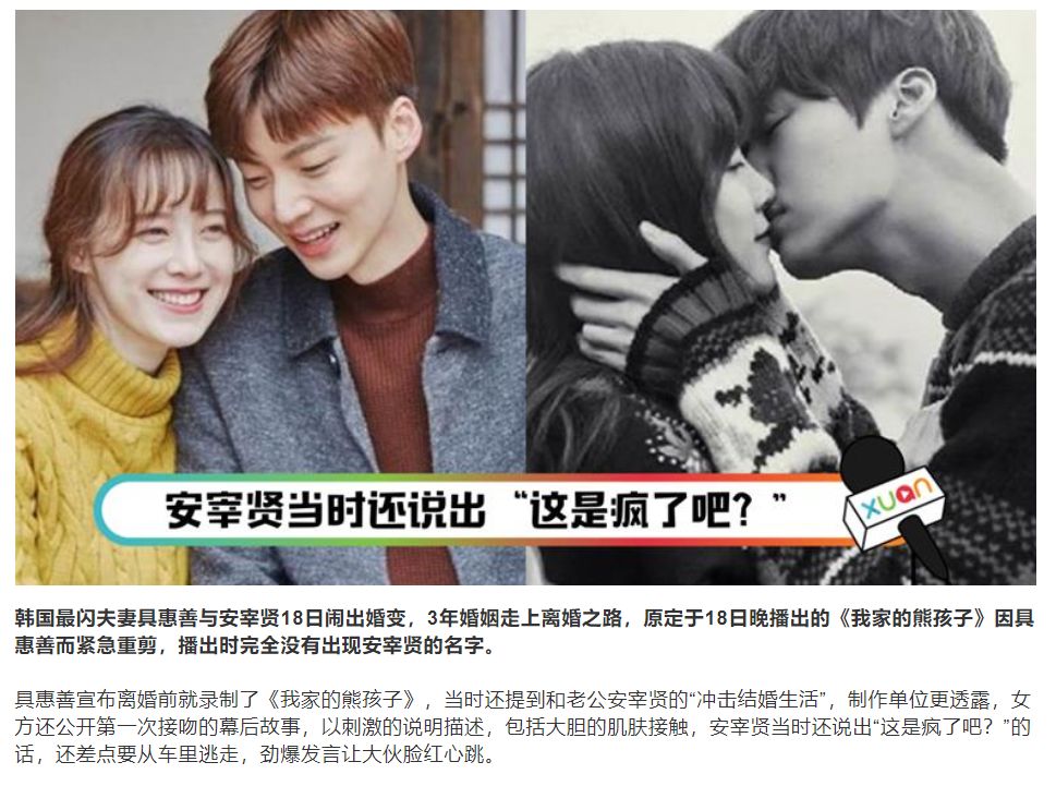 - 对不熟悉具惠善和安宰贤这对韩国CP的人来说,具惠善这个姐弟恋大女主,到了离婚这一步,才拥有了更高的知名度。 她亲身示范了,从甜到眩晕到撕到发昏,总共分几步。 新婚时,他们参加CP综艺,在与世隔绝、