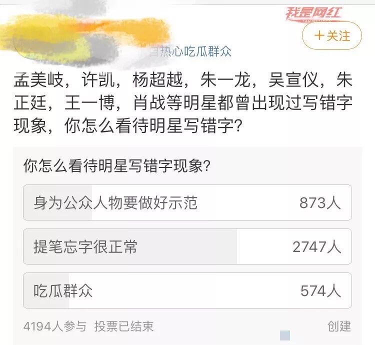 有营销号搞事地弄了个投票,提笔忘字很正常”这个选项选的人还挺多的,结果就被吃瓜群众大嘲:“爱豆就可以容许他没文化了吗?九年义务教育读到哪里去了?”