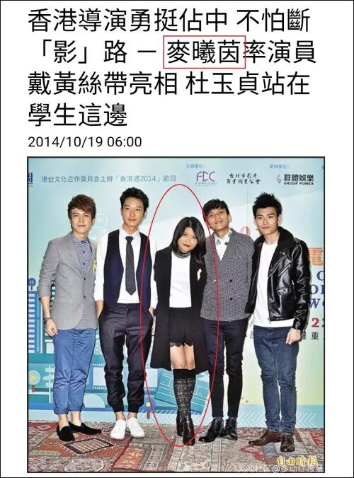 2014年10月,在“占中”运动进入高潮阶段时,麦曦茵率一众演员戴黄丝出席一个名为的“香港当代影展”的记者会。我们也都知道,“黄丝带”就是2014年社运事件中乱港分子的身份标识之一。期间,她更是承认自己有亲身前往乱港活动现场。