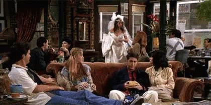 多年后,瑞秋成了离经叛道的逃婚女孩,穿着一袭婚纱闯进咖啡店,也再度闯进了罗斯的心。