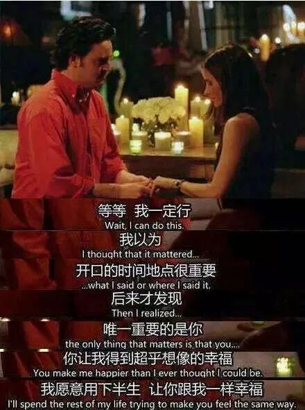 而在剧中,这首歌在钱德勒向莫妮卡求婚时出现,他们凝视着彼此,眼里有光。