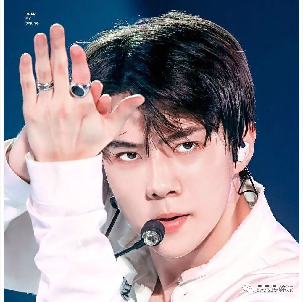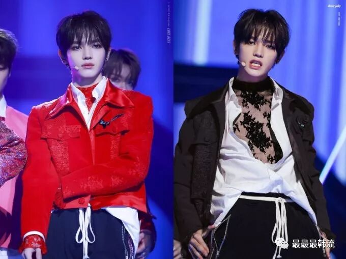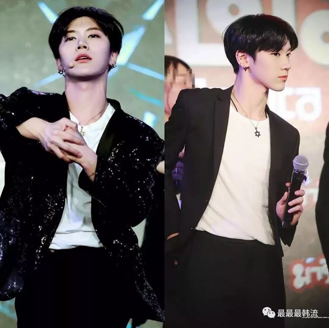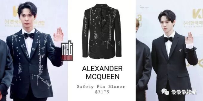 TEN的复古亮片西装让人感觉下一秒就要去party跳迪斯科,明明简洁大方的纯黑色更帅气呀。
