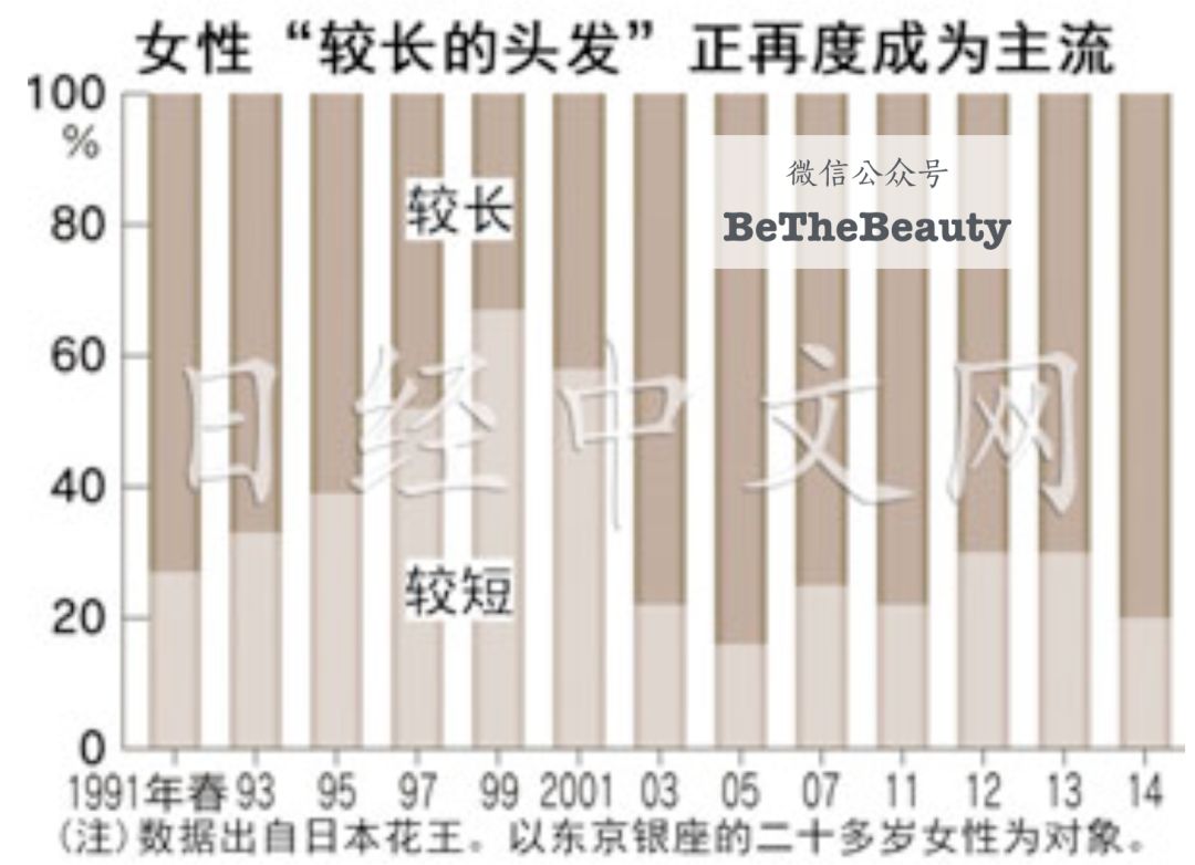 ▲日经中文网统计了1991-2014年间女性长短发比例