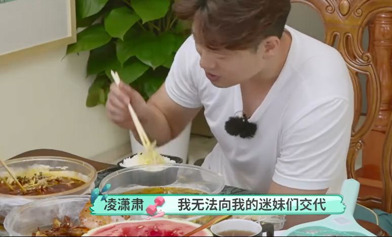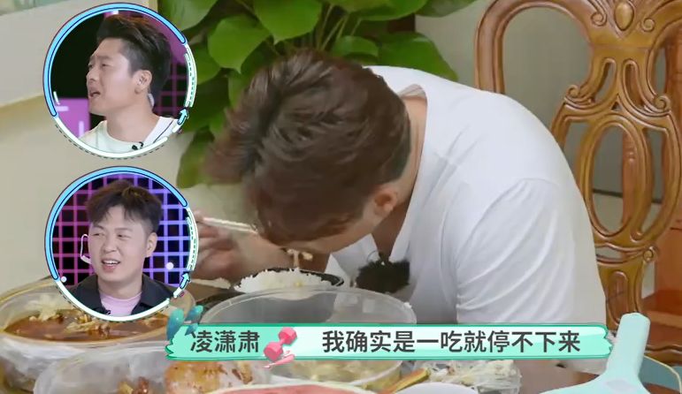 凌潇肃边吃还边说自己不胖,都是因为自己太高了,摄影师比自己矮,所以拍的显的我胖。哈哈哈哈,为了吃口饭,连歪理都整出来了。