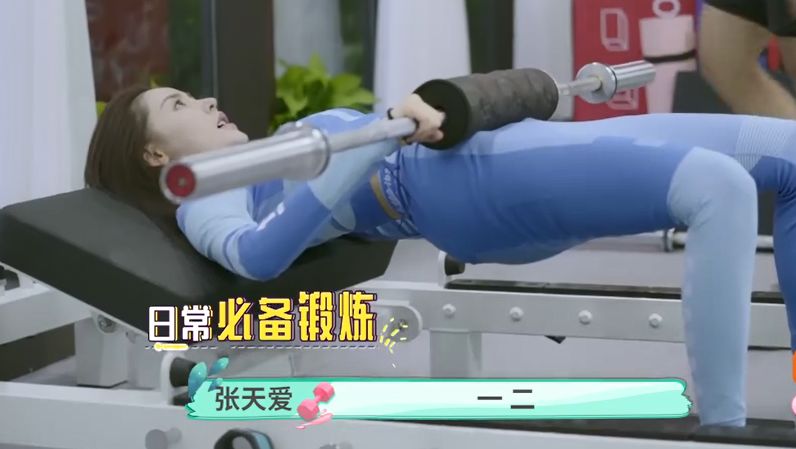 张天爱的生活就自律多了,第一个画面就是在健身。