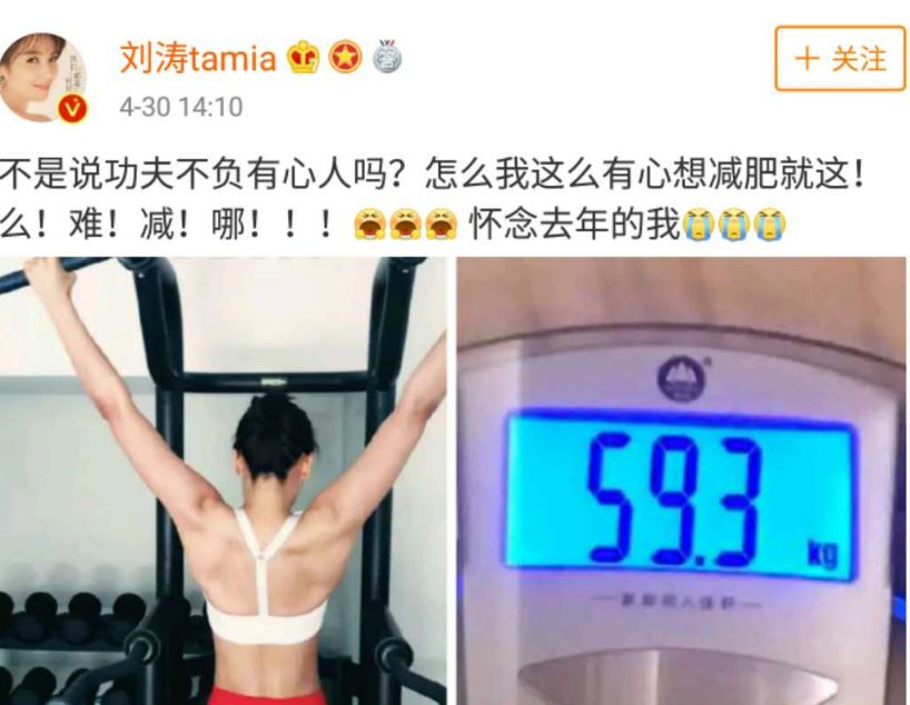 一直坚持锻炼的刘涛,也没法控制好自己的体重。