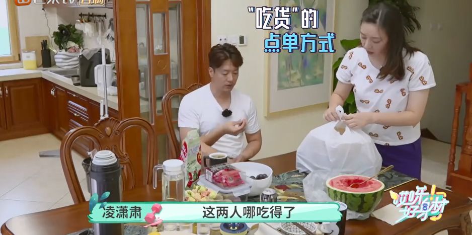 一开始说自己不吃饭,只吃一点鱼的凌潇肃,越吃越多,还赶紧甩锅给老婆,说都是你逼我吃的。对着镜头说:以后迷妹们,不要diss我,diss我老婆吧。