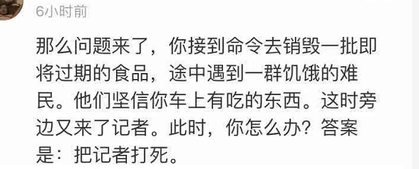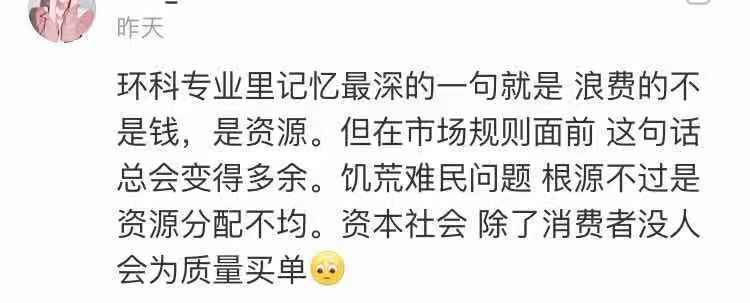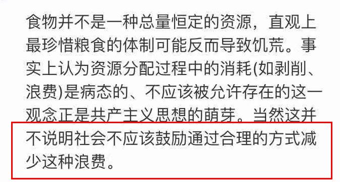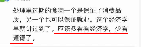 如果现在只是单纯有人讨论浪费食物,其他人就纷纷跳出来高贵地指出,这是发展的必经之路,消费主义就是这样,这才是合理的制度,你还是多看看经济学少看看道德经……