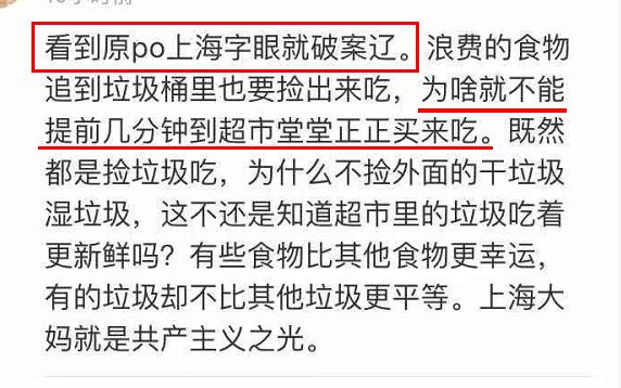 问题是博主并不是说追到垃圾桶里捡东西吃是OK的,评论完全只是盯住了博主妈妈(上海阿姨)的行为去断章取义。