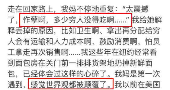 “中上层阶级”的博主都看不得食物浪费,可能经历过苦日子的博主妈妈就更没办法接受。