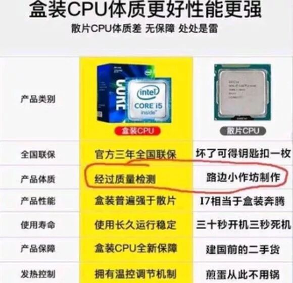 CPU散片怎么比盒装便宜这么多?小作坊生产的吧?