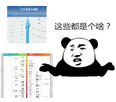 不过话说回来,“组装机水深”已经被大家所公认,对于平常并不接触电脑硬件的普通玩家来说,玩惯了只管开机就行的品牌机,这些个CPU显卡型号看着就让人头疼,关键是你还不能简单地通过比大小来判断性能。