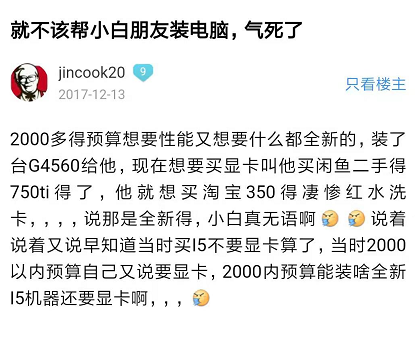 至于配置单,不管你是百元大战LOL还是万元神机刷贴吧,各个价位各种人群的不同需求,在硬件论坛上已经成为了日经话题。